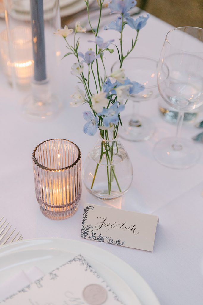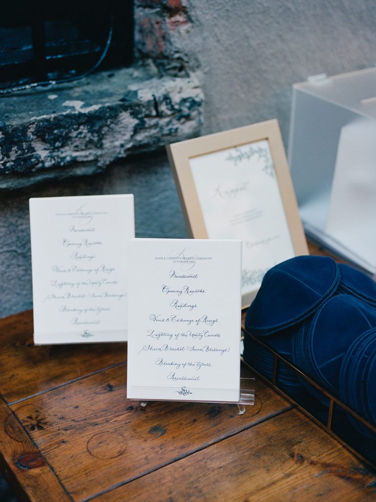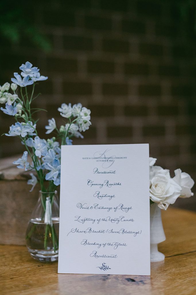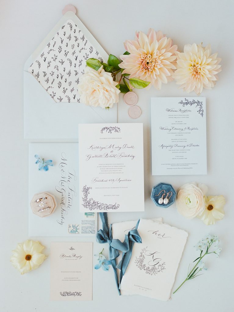 Katie & Garret, what a client. As nice and charming as a couple can be, an absolute delight to work with. They loved The Freiburg Collection and we customized it with a beautiful color palette with notes of blue, a color present along their beautiful wedding day in Brooklyn. BLB Events created this intimate atmosphere where every detail was thoughtfully conceived to make this day just perfect. And worthy of being featured at Wedding Sparrow