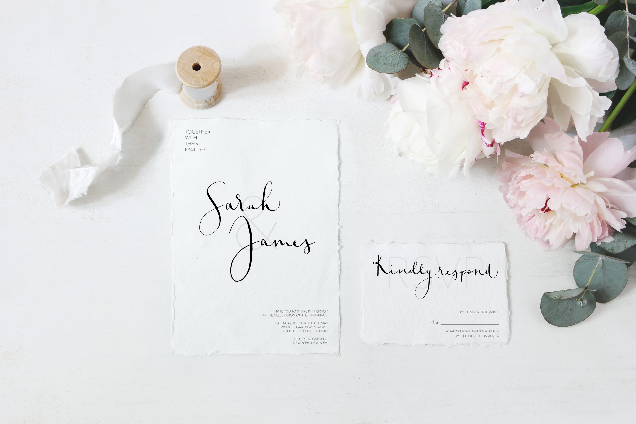 Mi caligrafía hecha a mano utilizada para esta colección lo convierte en un diseño todavía más exclusivo (puedes echar un vistazo a mis estilos de caligrafía aquí). Caligrafiaré a mano vuestros nombres y otros elementos y a continuación digitalizaré la caligrafía y personalizaré el texto de las invitaciones a vuestro gusto para que tengáis las invitaciones perfectas para vosotros y a vuestra medida (si queréis la caligrafía a mano en cada una de las piezas puedo hacerlo también, podéis consultarme presupuesto para este trabajo). Invitaciones con caligrafía personalizadas para vosotros.