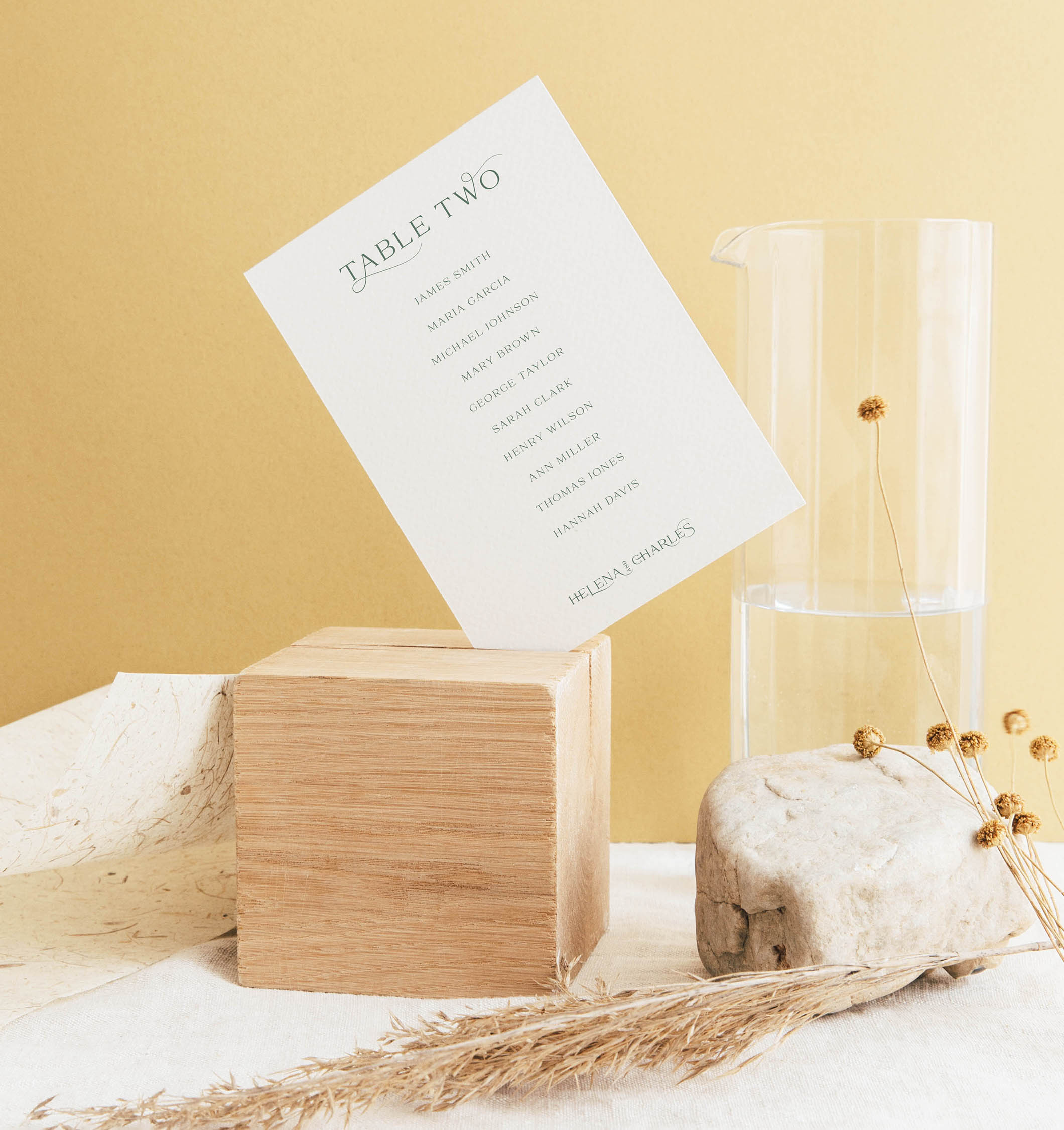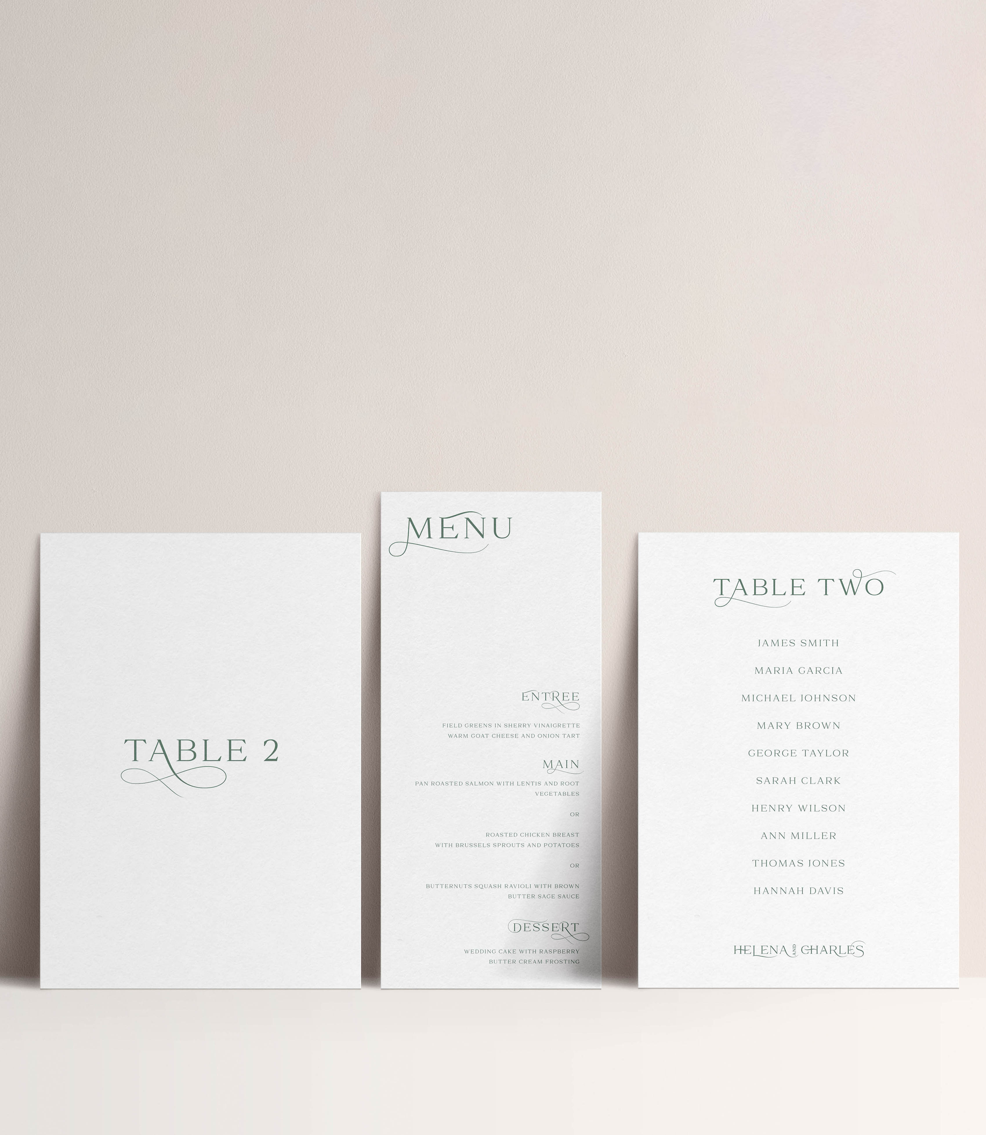 This collection includes pre-wedding stationery (invitation, Save The Date, detail card and RSVP card) and day-of wedding stationery: menus, seating cards, table number signs and place cards.