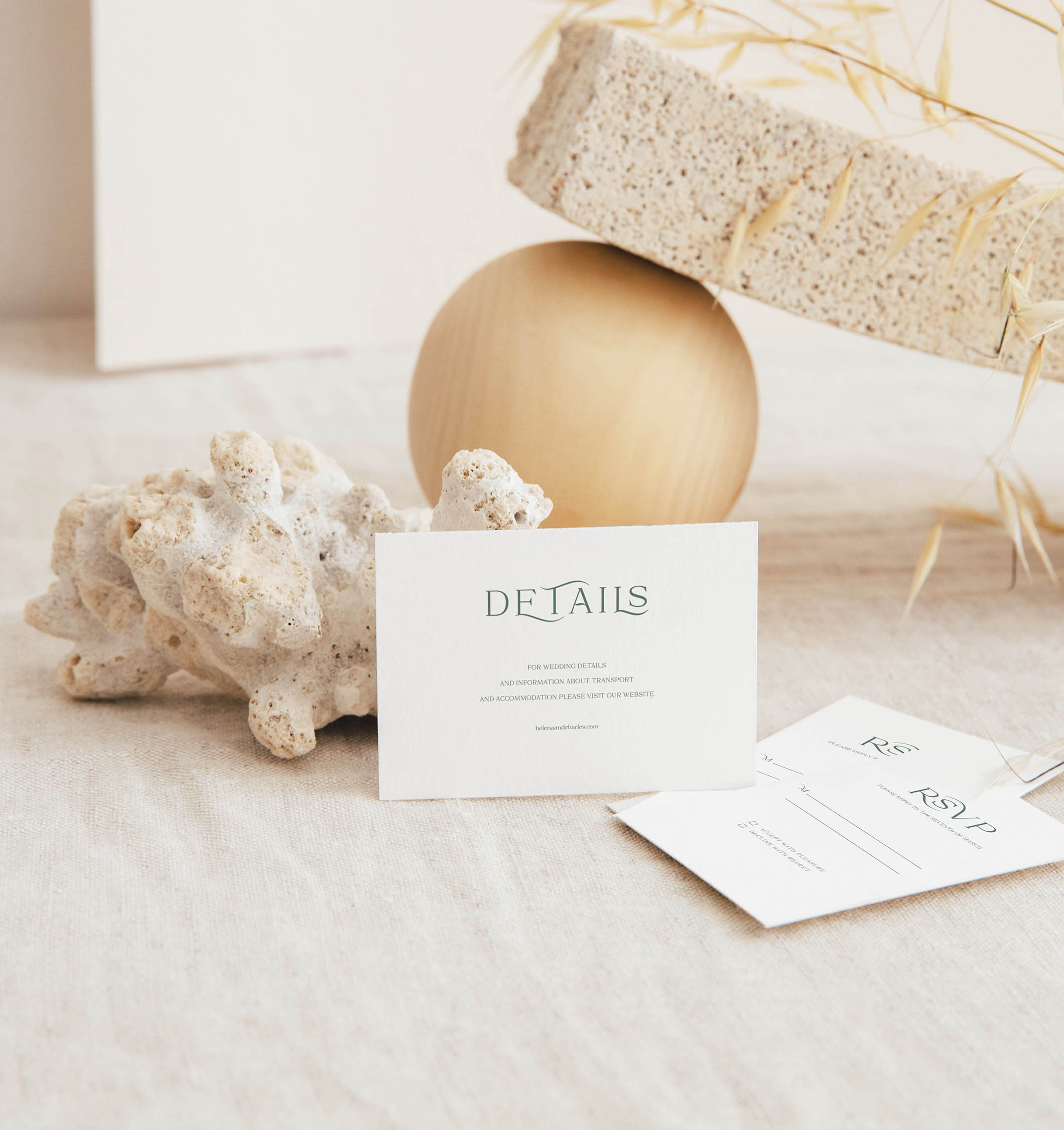 • In the Details Card (3×5 inches) you will be able to add useful information for your guests such the wedding list, transport or your wedding website (keep it simple, remember they’ve got Google!).