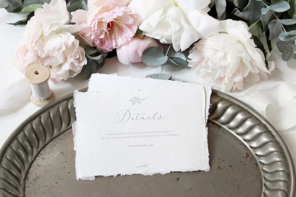 • In the Details Card (3×5 inches) you will be able to add useful information for your guests such the wedding list, transport or your wedding website (keep it simple, remember they have Google!).