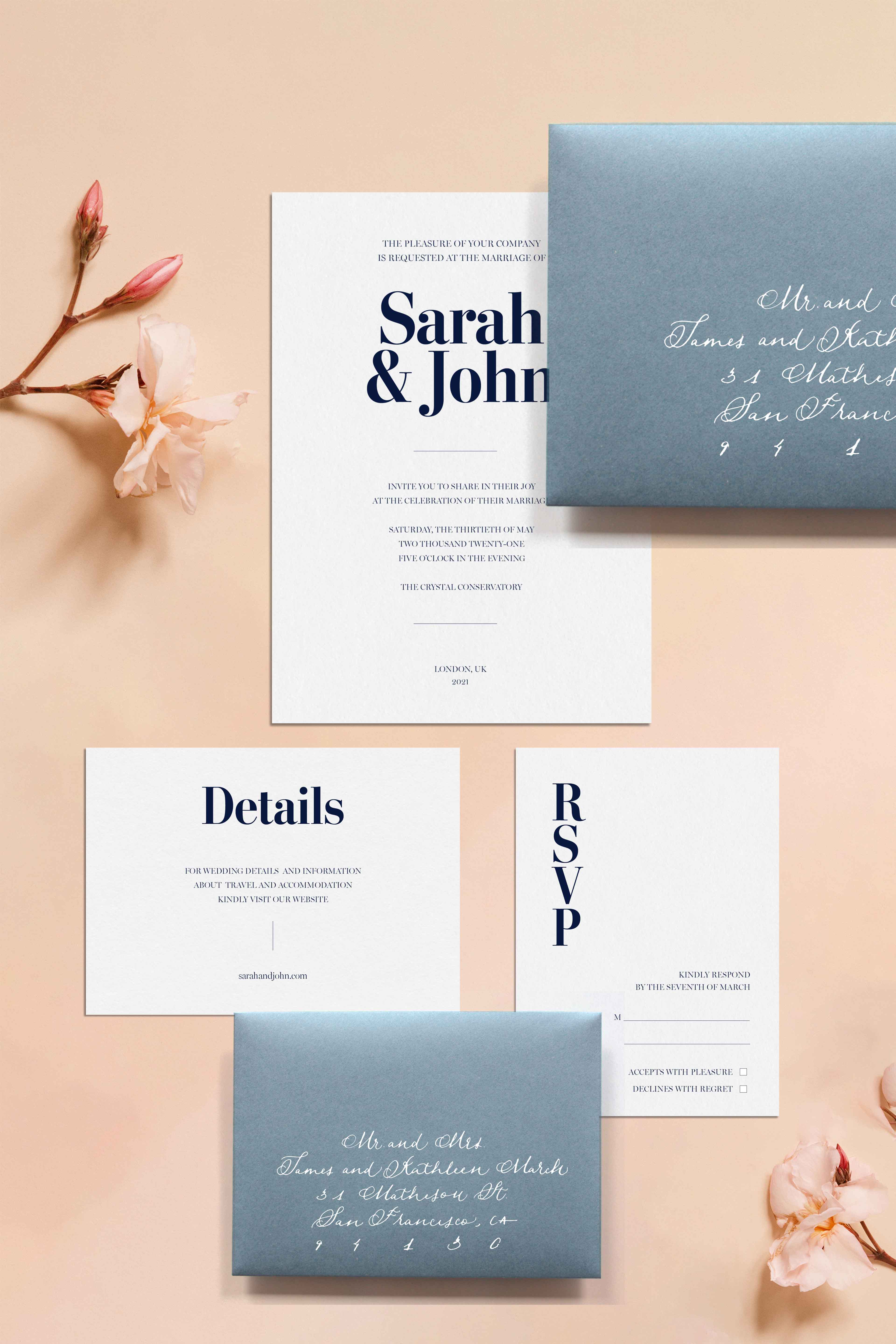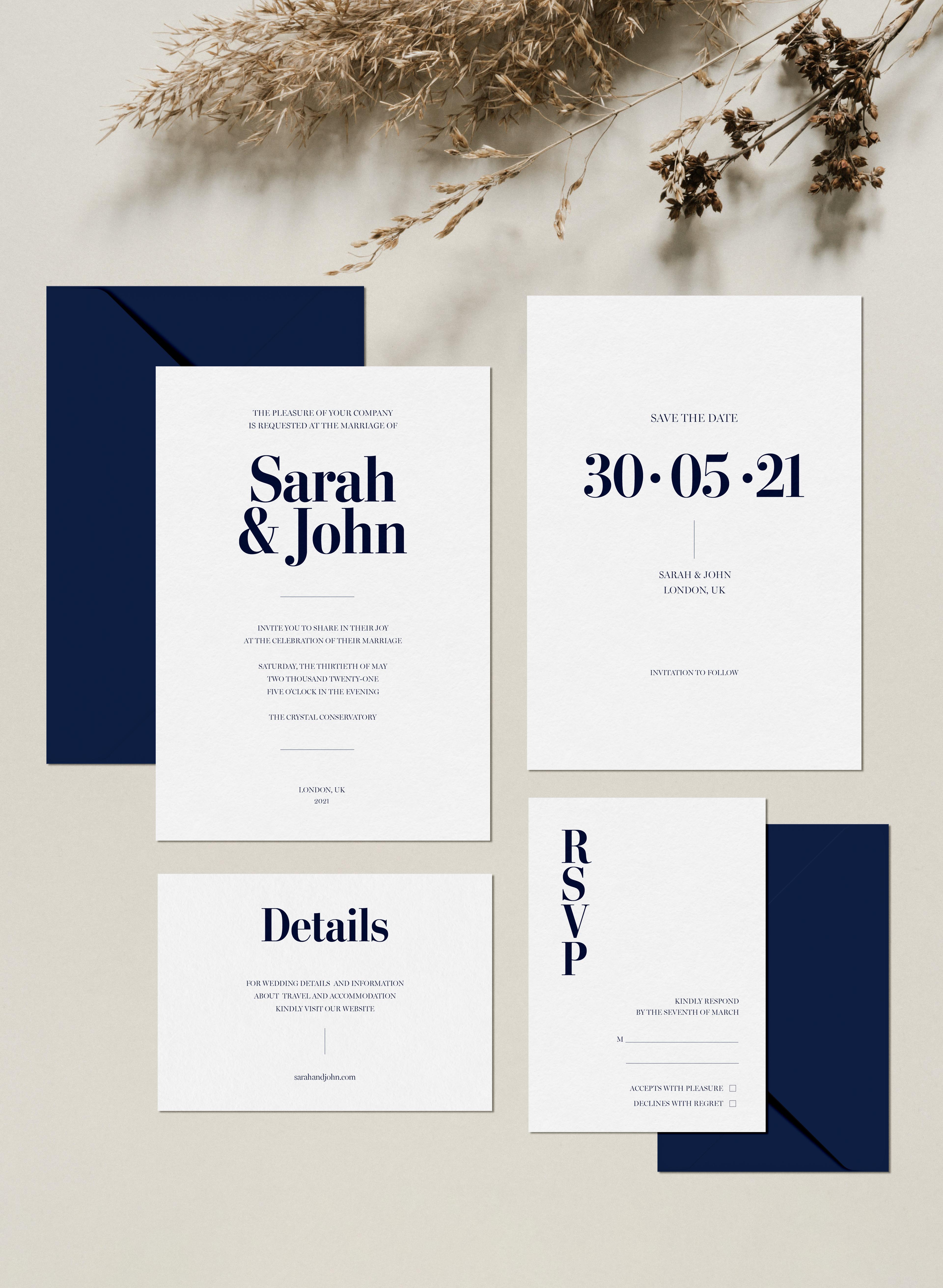 - In the Details Card (3×5 inches) you will be able to add useful information for your guests such the wedding list, transport or your wedding website (keep it simple, remember they have Google!).