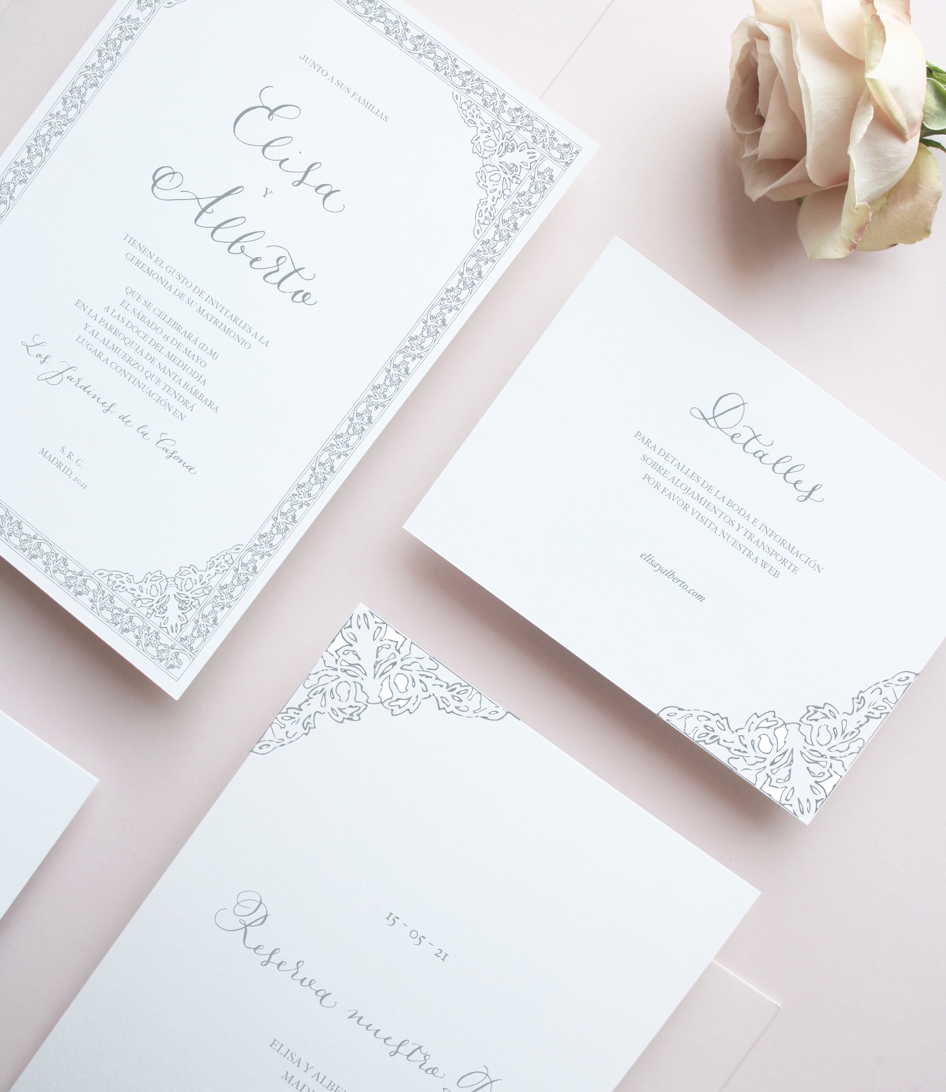 Use this space to customize your preferred options and calculate your budget directly. With what you have decided (or if you want me to advise you on the best option for you) write to me at maria@thespanielstudio.com so that I can advise you and plan the production of your stationery. I will personally take care of the whole process, so we will be in direct contact from the moment you write your first email until I send you the perfect stationery for you.